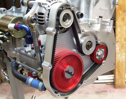 Considering the interest in buggies and auto-cross, the engine was designed with an enclosed belt drive for the alternator and oil pump. Using a single belt instead of two belts shortens the engine length by 20mm.